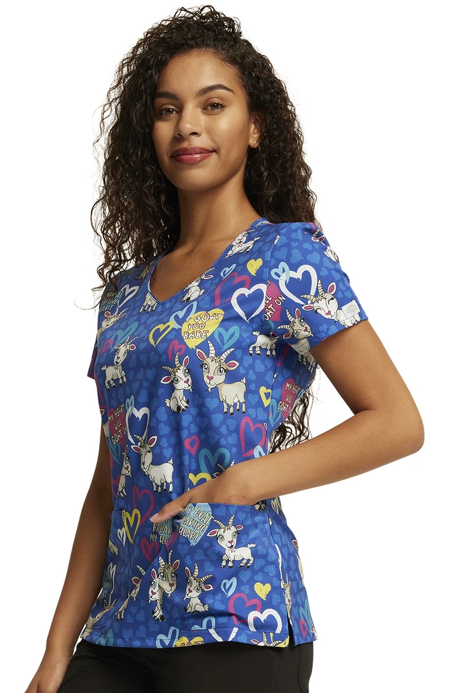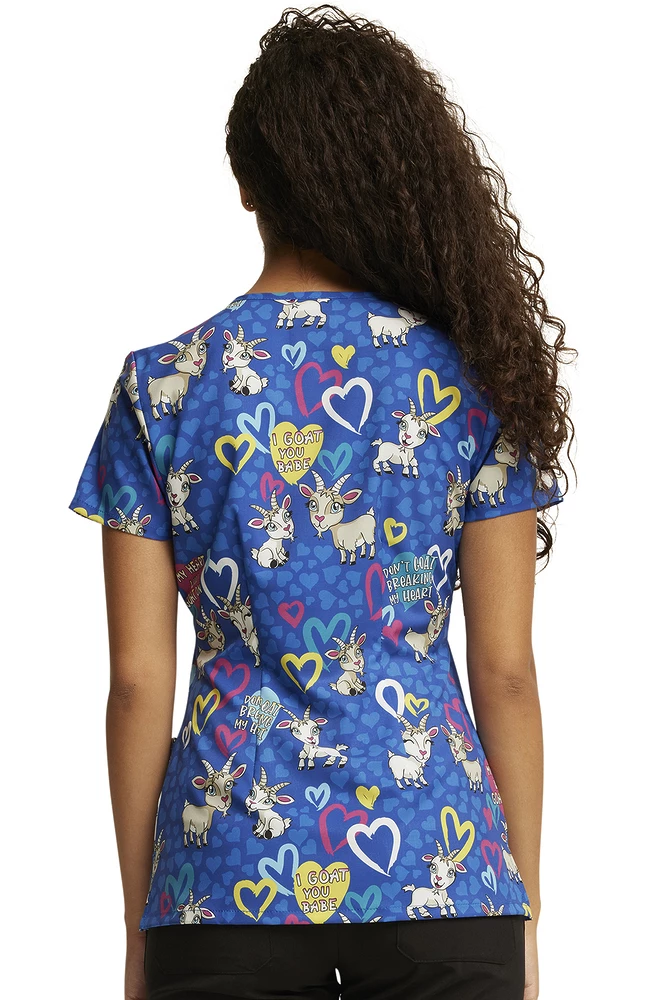 Feel like a GOAT (greatest of all time!) in the EDS Signature by Dickies Women’s I Goat You Babe Print Scrub Top. This flattering scrub top throws a spin on your everyday uniform and has pockets for your needs.