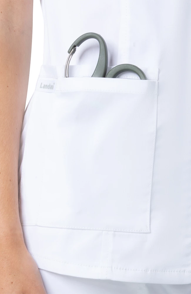 In crisp white, the ProFlex by Landau Women’s Collared Zip Front Solid Scrub Top is ideal for students. This modern scrub top has five pockets to keep you organized and ready, no matter where your day takes you.