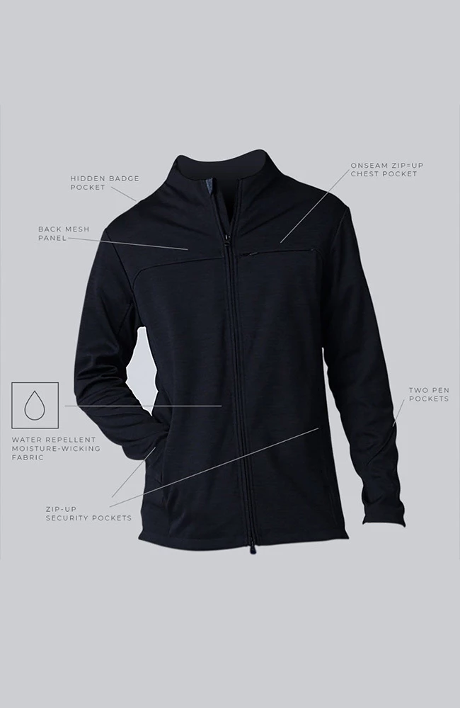As the most lightweight and effortlessly mobile jacket in your wardrobe, the Medelita Men’s Ionic Solid Scrub Jacket takes the cake. Contoured seaming on the back, front and sleeves creates an incredible range of motion.