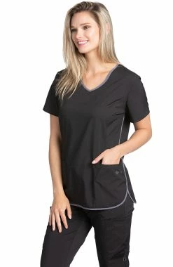 The stunning Fit by White Cross Women’s Curved Solid Scrub Top features sophisticated athletic details that set the tone for your day. This sleek and chic scrub top has a U-curved hemline, wide side vents and contoured princess seams.