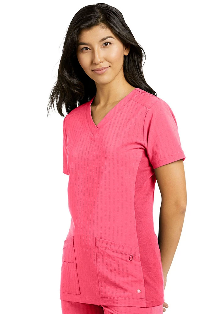 The Fit by White Cross Women’s Seersucker Solid Scrub Top is the perfect summer striped look. This attractive, lightweight solid scrub top features moisture-wicking technology and side stretch panels.