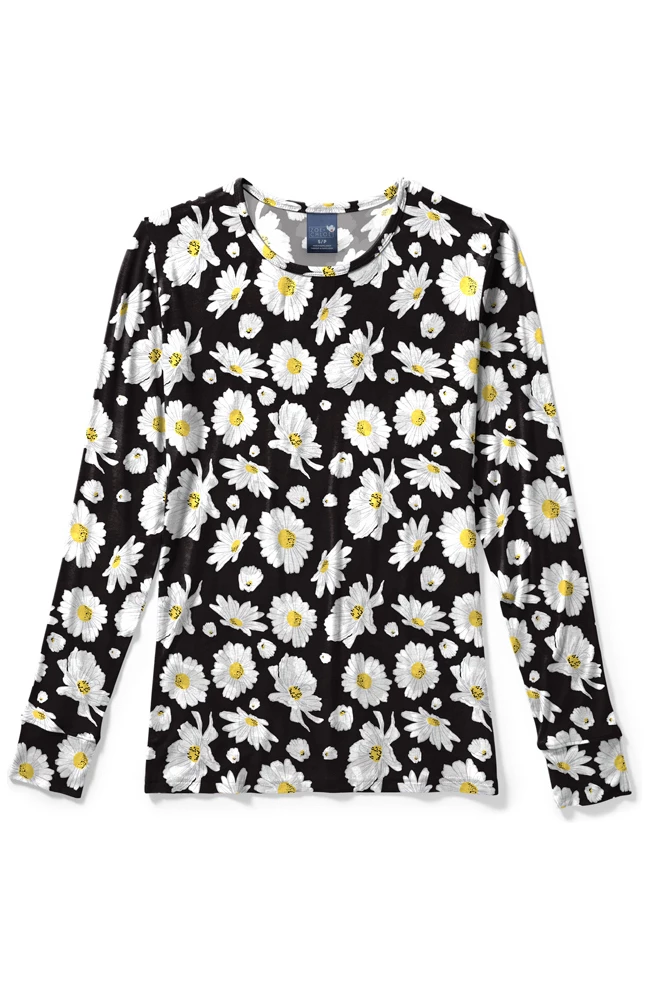 Adorable and essential, the Zoe and Chloe Women’s Crew Neck Daisy Crazy Print T-Shirt adds warmth, comfort, and spring style to your professional uniform. Made from stretchy fabric that moves with you, this crewneck tee is perfect for layering or wearing on its own.